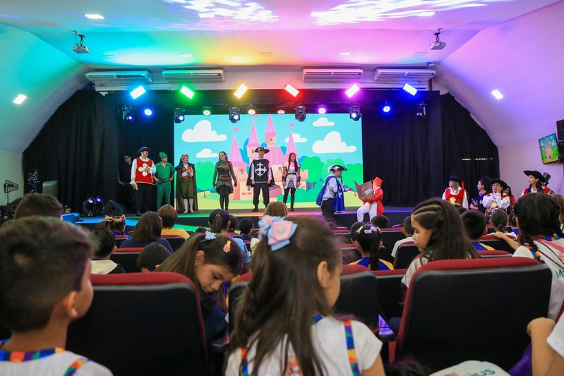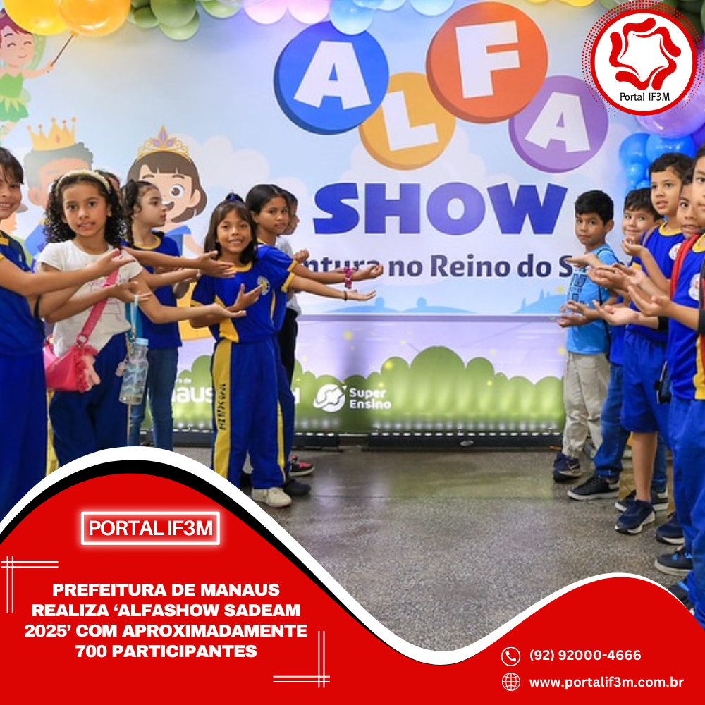 Com o tema “Imersão no Reino do Saber”, a Prefeitura de Manaus, por meio da Secretaria Municipal de Educação (Semed), realizou, nesta terça-feira, 28/10, o “Alfashow Sadeam 2025”, no auditório da Semed, localizado na avenida Maceió, bairro Parque 10 de Novembro, zona Centro-Sul da capital. O evento contou com a participação de aproximadamente 700 pessoas, entre educadores e 420 crianças do 2º ano do ensino fundamental. A programação foi dividida em dois momentos, manhã e tarde, e transmitida ao vivo pelo canal oficial da secretaria no YouTube.