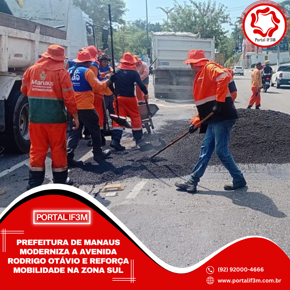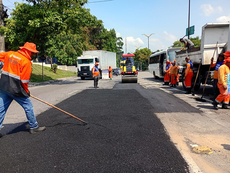 A Prefeitura de Manaus, por meio da Secretaria Municipal de Infraestrutura (Seminf), avança com o “Plano de Verão” e realiza, nesta quinta-feira, 30/10, os serviços de recuperação asfáltica na avenida Rodrigo Otávio Jordão Ramos, importante corredor que conecta os bairros Japiim e Petrópolis, na zona Sul da capital.