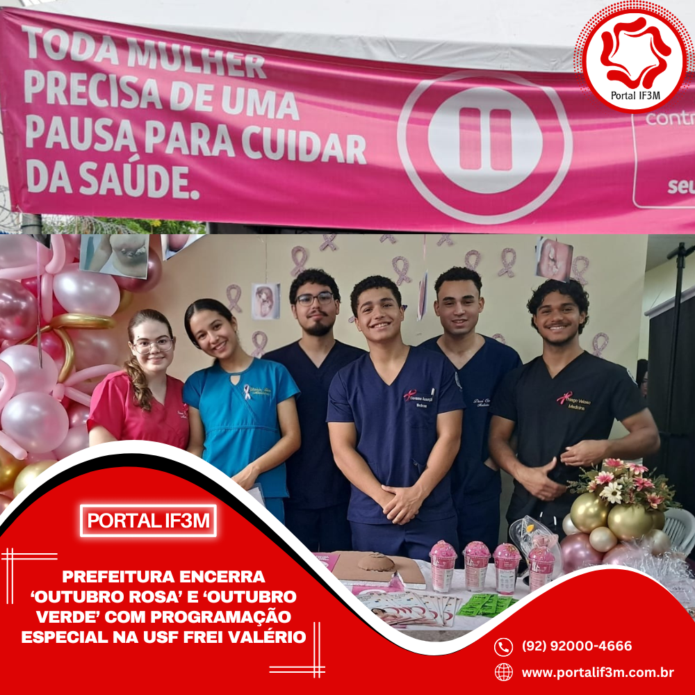 A intensificação da oferta de serviços da Rede de Atenção Primária à Saúde marcou o último dia da programação do “Outubro Rosa” e do “Outubro Verde” nas unidades da Prefeitura de Manaus, por meio da Secretaria Municipal de Saúde (Semsa). Nesta sexta-feira, 31/10, a Unidade de Saúde da Família (USF) Frei Valério Di Carlo, na zona Norte, mobilizou a comunidade do Novo Israel para destacar a importância do cuidado feminino.