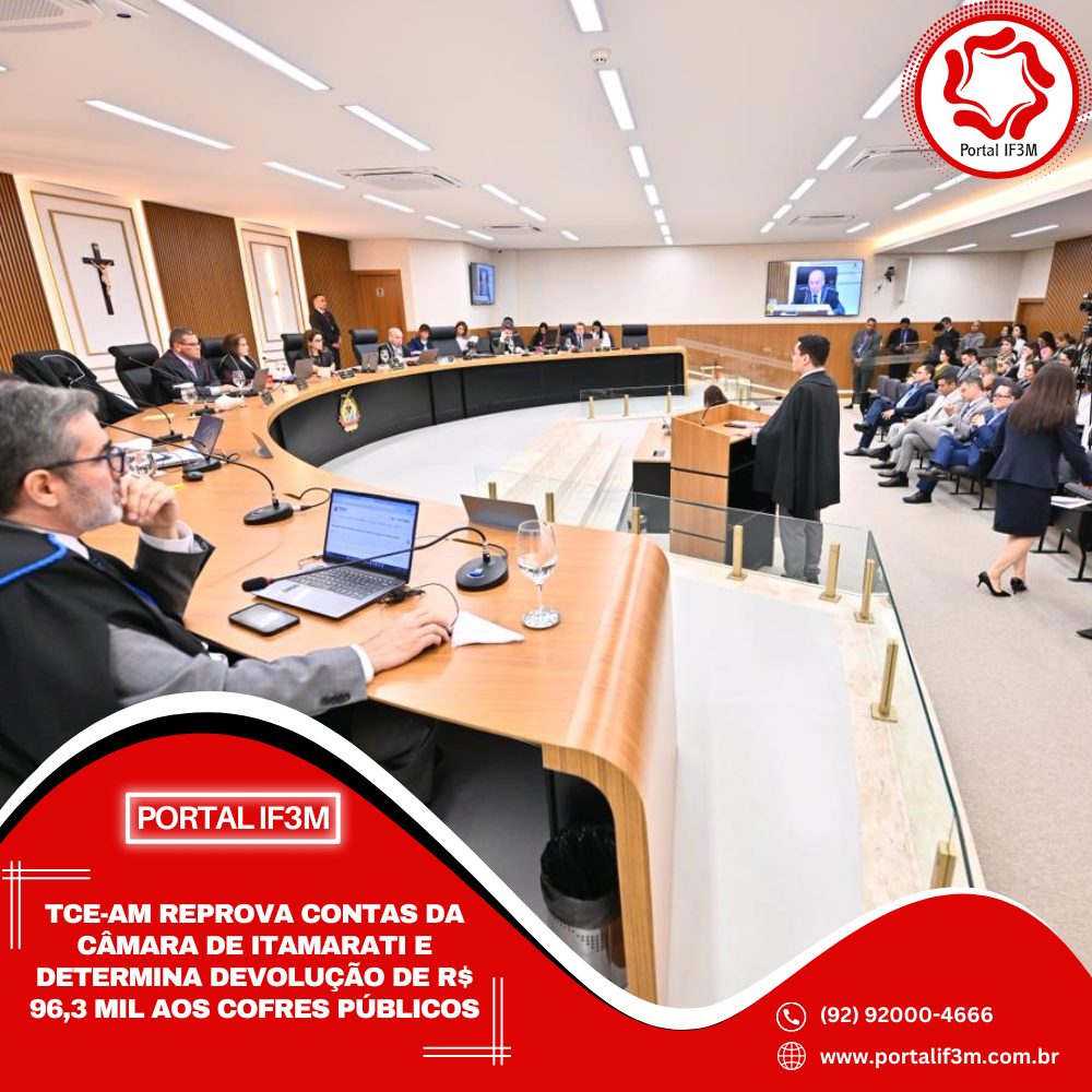 O Tribunal de Contas do Amazonas (TCE-AM) julgou irregulares as contas de 2023 da Câmara Municipal de Itamarati e determinou que o então presidente da Casa Legislativa, Antônio Sílvio Campelo Monteiro, devolva R$ 60,5 mil aos cofres públicos e pague duas multas que totalizam R$ 35,8 mil. A decisão foi proferida na manhã desta segunda-feira (3), durante a 34ª Sessão Ordinária do Tribunal Pleno.