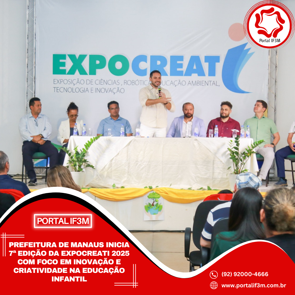 A Prefeitura de Manaus, por meio da Secretaria Municipal de Educação (Semed), deu início, nesta quarta-feira, 12/11, à 7ª edição da Exposição de Ciências, Robótica, Educação Ambiental, Tecnologia e Inovação (Expocreati), com a participação de crianças da educação infantil. O evento, que reúne 300 escolas da rede municipal, foi realizado na Divisão de Desenvolvimento Profissional do Magistério (DDPM), na avenida Maceió, zona Centro-Sul da cidade. A iniciativa promoveu um dia voltado ao conhecimento e à inovação, envolvendo estudantes, professores, gestores e visitantes.