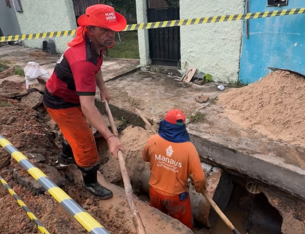 A rede de esgoto ligada à drenagem de águas pluviais sobrecarregou o sistema da Prefeitura de Manaus, o que causou o rompimento da tubulação, em decorrência das águas das chuvas associadas aos resíduos orgânicos na passagem pela drenagem.