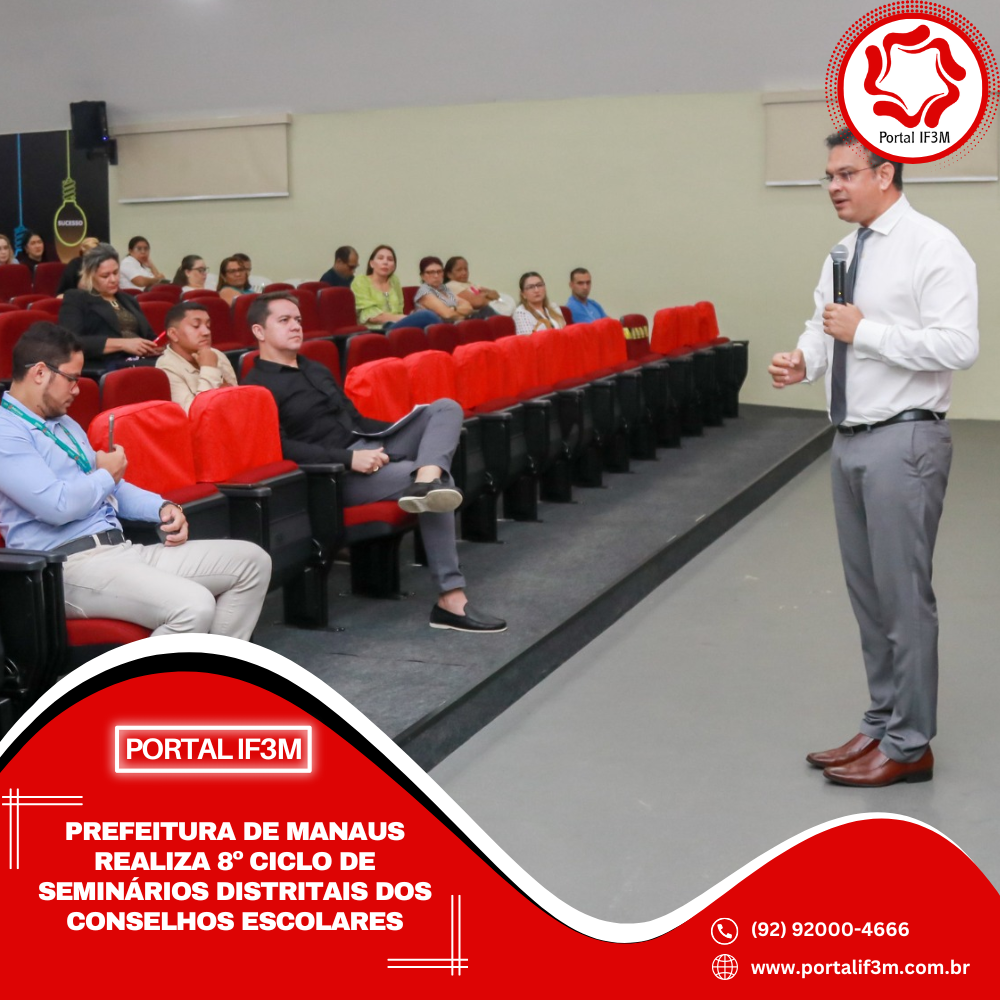 Com o tema “O Conselho Escolar e o Novo Plano Municipal de Educação 2026–2036”, a Prefeitura de Manaus, por meio da Secretaria Municipal de Educação (Semed), realizou, nesta quinta-feira, 13/11, o 8º Ciclo de Seminários Distritais dos Conselhos Escolares, com a participação dos presidentes das comissões fiscais das escolas da rede municipal de ensino.
