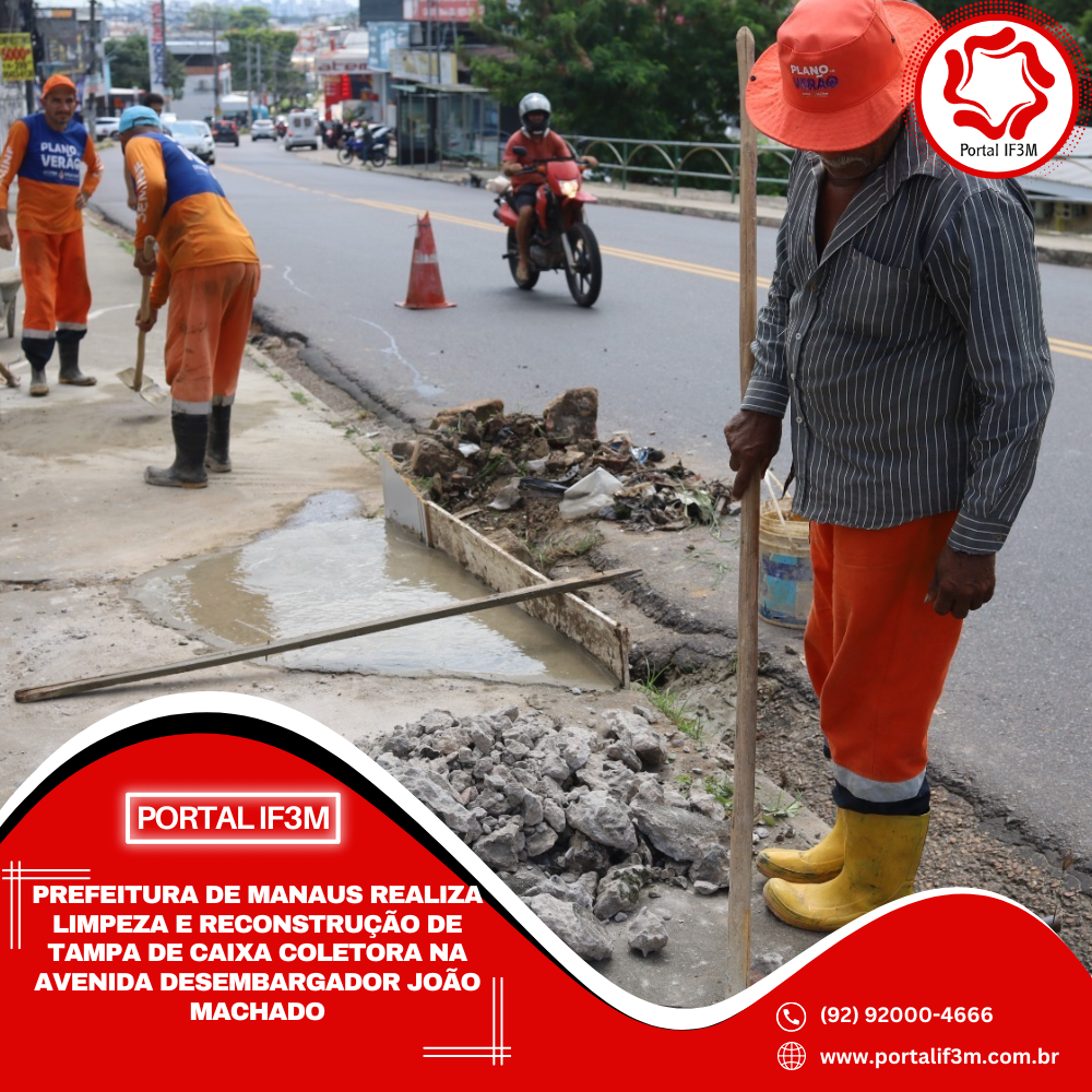 A Prefeitura de Manaus, por meio da Secretaria Municipal de Infraestrutura (Seminf), atuou, nesta sexta-feira, 14/11, na desobstrução e reconstrução de tampa de caixa coletora da avenida Desembargador João Machado, no bairro Alvorada, zona Centro-Oeste. A avenida, que é uma das principais ligações do bairro, recebe diariamente um grande fluxo de veículos e pedestres, o que torna o serviço essencial para garantir segurança e mobilidade.