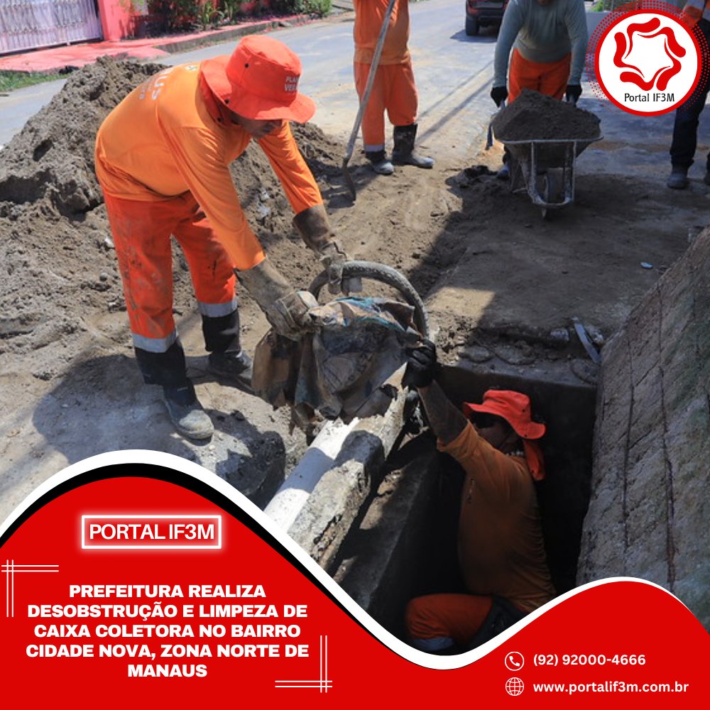 A Prefeitura de Manaus, por meio da Secretaria Municipal de Infraestrutura (Seminf), realiza, nesta sexta-feira, 14/11, o serviço de desobstrução de caixa coletora e manutenção na galeria subterrânea da rua Jerusalém, no bairro Cidade Nova, zona Norte da capital, devolvendo à via melhores condições no sistema de drenagem.