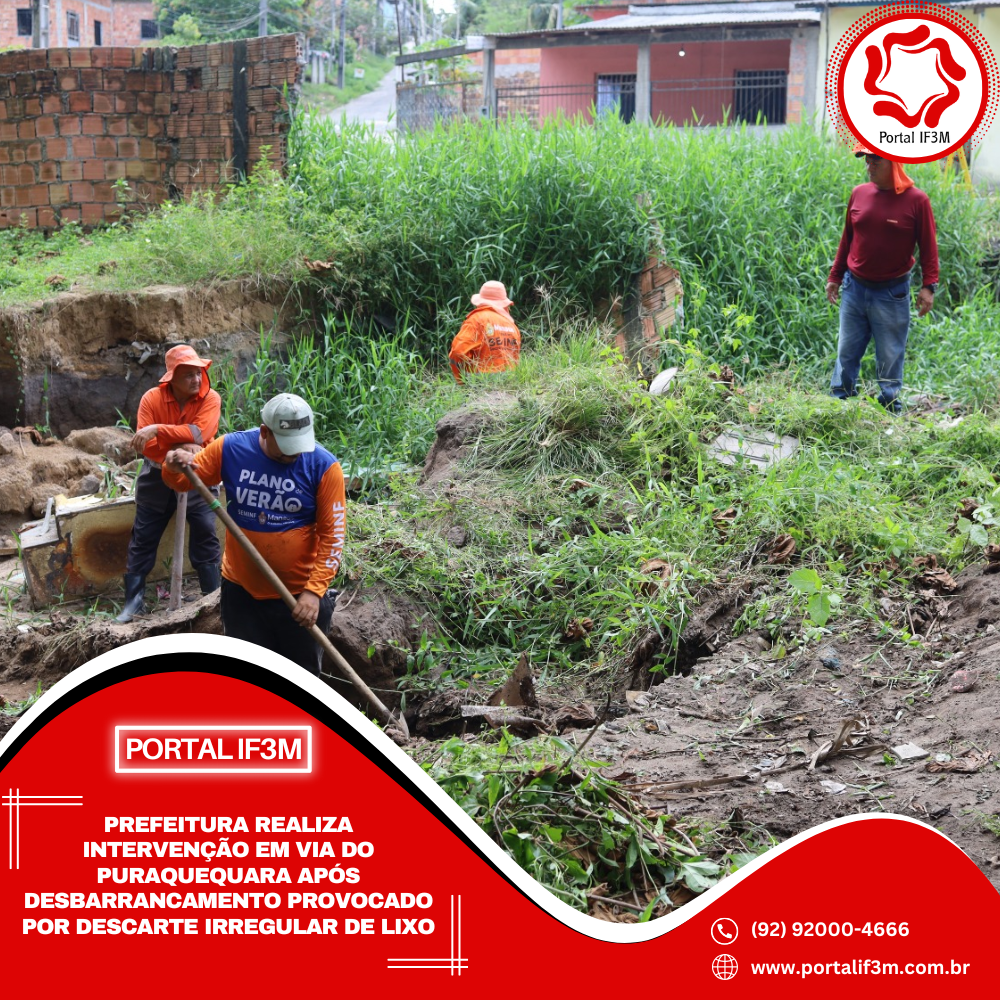 A Prefeitura de Manaus, por meio da Secretaria Municipal de Infraestrutura (Seminf), realizou, nesta segunda-feira, 17/11, uma intervenção na rua Capitão Anísio, localizada no bairro Puraquequara, zona Leste, após a via ter sofrido um desbarrancamento provocado pelo descarte irregular de lixo.
