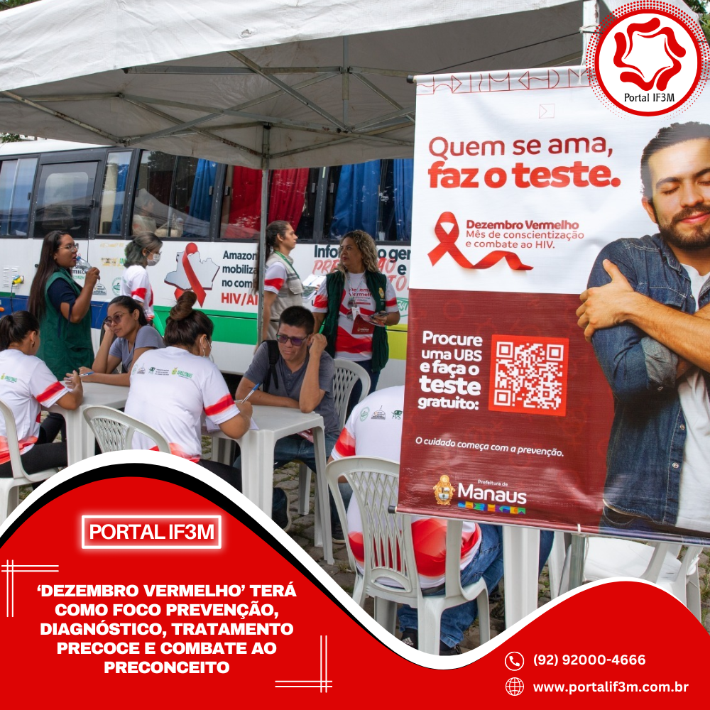 Com o objetivo de sensibilizar a população sobre a importância da prevenção, do diagnóstico precoce, do tratamento em tempo oportuno e do combate ao preconceito em relação às pessoas vivendo com HIV/Aids, a Prefeitura de Manaus, em parceria com a Fundação De Vigilância Em Saúde Do Amazonas – Drª Rosemary Costa Pinto (FVS-RCP) e Organizações da Sociedade Civil (OSCs), dará início na próxima segunda-feira, 1º/12, às ações da campanha “Dezembro Vermelho”.