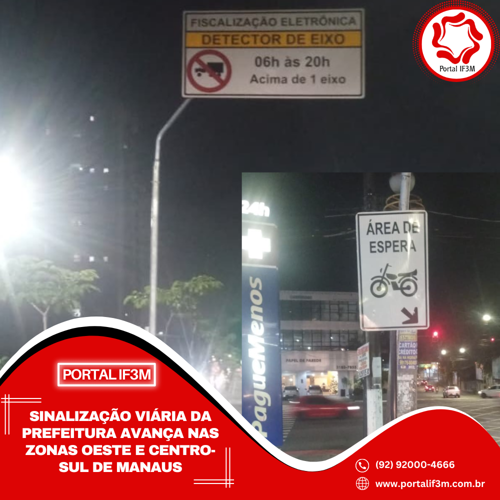Na avenida Djalma Batista, a Prefeitura de Manaus implantou placa informando sobre a futura fiscalização de veículos pesados na via, que é uma das mais movimentadas na capital amazonense. Em outro ponto da Djalma Batista, na esquina com a rua João Valério, o IMMU instalou placas indicando espaço para paradas de motos e bicicletas próximo ao semáforo.