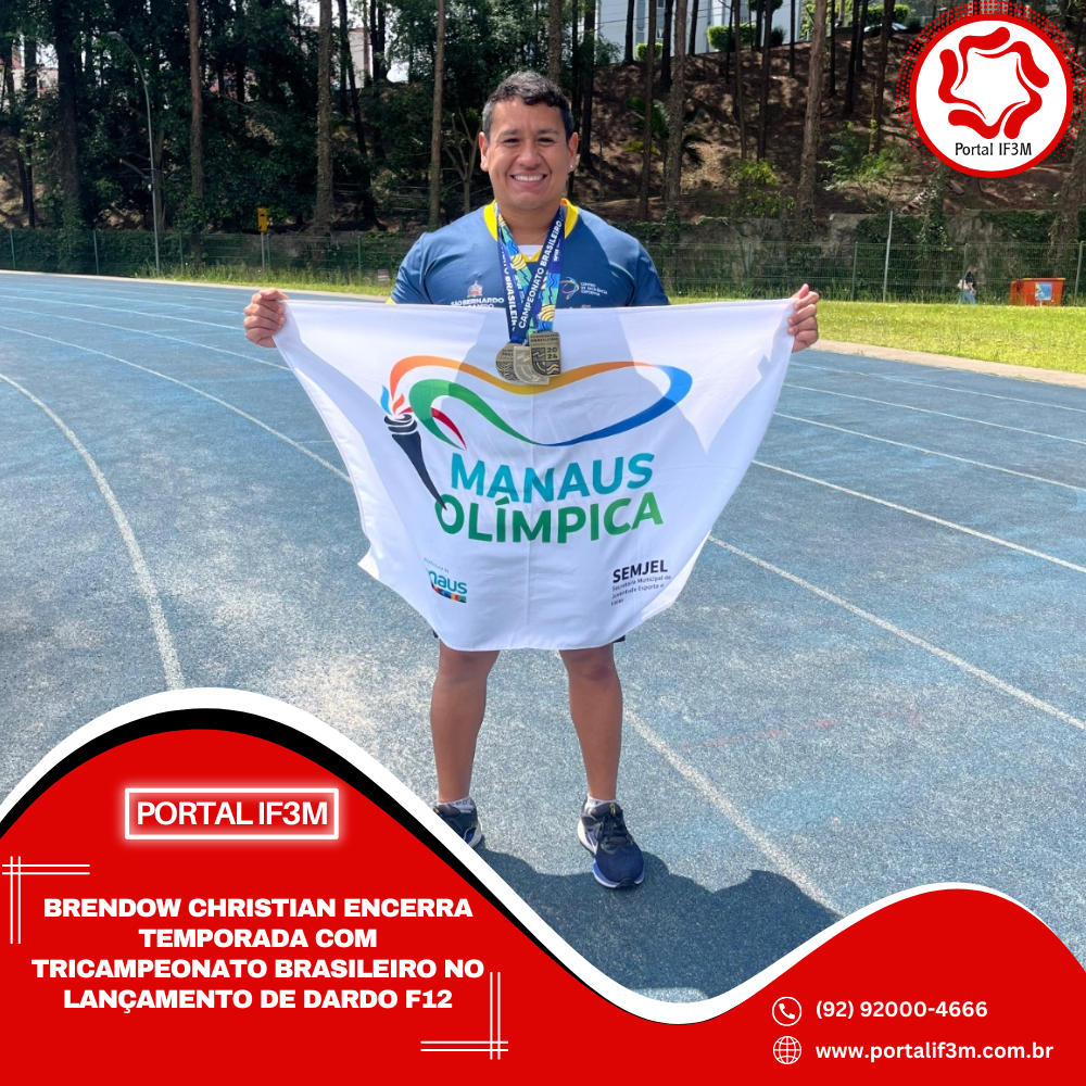 A Prefeitura de Manaus, por meio da Secretaria Municipal de Juventude, Esporte e Lazer (Semjel), destaca a conquista do atleta paralímpico Brendow Christian, do programa “Manaus Olímpica”, que finalizou a temporada de 2025 com o tricampeonato brasileiro consecutivo (2023, 2024 e 2025) no lançamento de dardo F12. O título foi alcançado durante o Campeonato Brasileiro Loterias Caixa de Atletismo, realizado no Centro de Treinamento Paralímpico Brasileiro, em São Paulo (SP).
