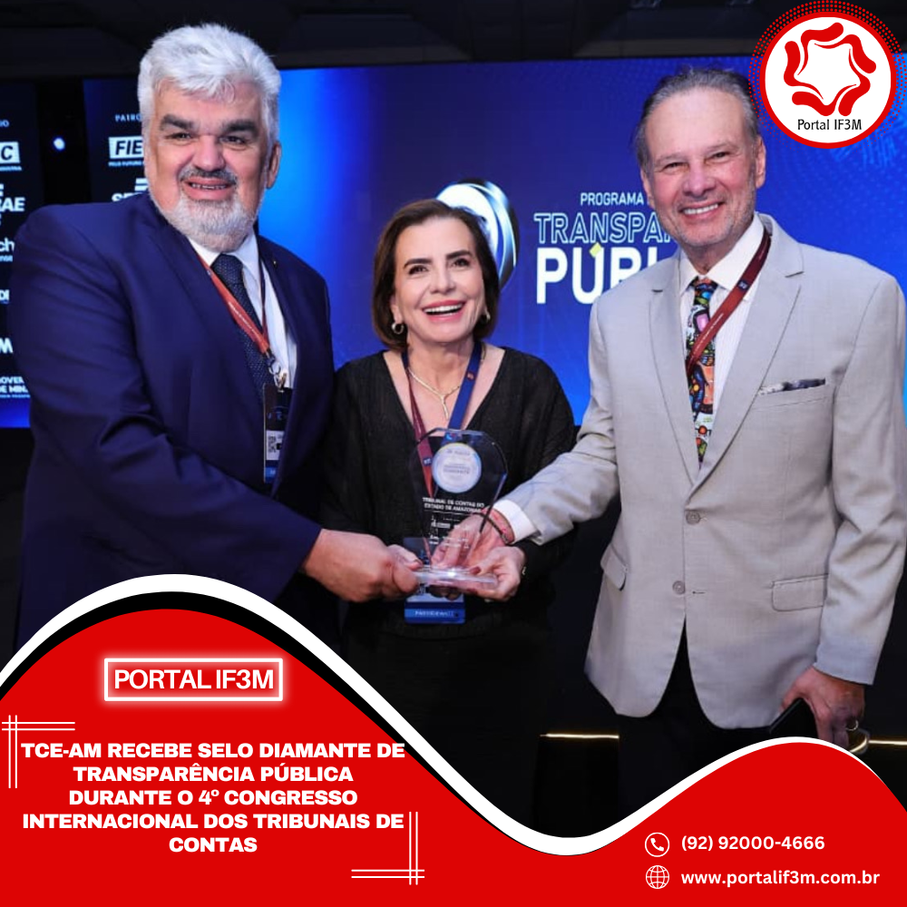 Em reconhecimento ao desempenho máximo nos critérios nacionais de transparência, o Tribunal de Contas do Amazonas (TCE-AM) recebeu, nesta quinta-feira (4), o Selo Diamante do Programa Nacional de Transparência Pública (PNTP). A entrega ocorreu durante o 4º Congresso Internacional dos Tribunais de Contas (CITC), em Florianópolis.
