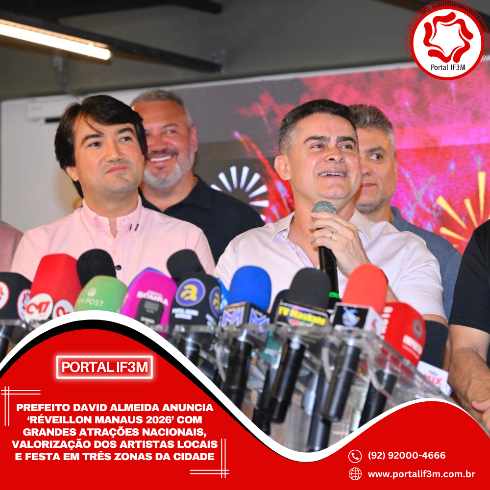 O prefeito de Manaus, David Almeida, anunciou, na manhã desta quinta-feira, 18/12, a programação oficial do “Réveillon Manaus 2026 – O encontro da nossa gente”, consolidando a virada do ano como um dos maiores eventos populares da região Norte. O lançamento ocorreu no auditório do mirante Lúcia Almeida, no centro histórico da capital, reunindo autoridades, artistas e representantes da imprensa.