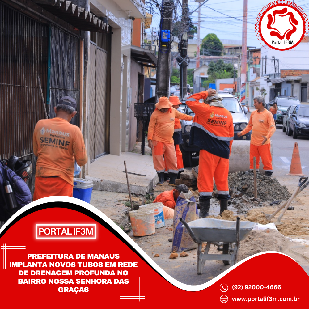 A Prefeitura de Manaus, por meio da Secretaria Municipal de Infraestrutura (Seminf), trabalhou, nesta terça-feira, 6/1, na modernização da rede de drenagem da rua Libertador, no bairro Nossa Senhora das Graças, com a implantação de novos tubos no sistema, que irá proporcionar mais resistência e durabilidade na área.