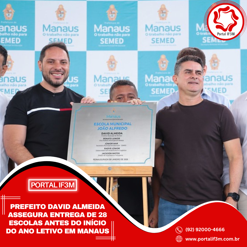 O prefeito de Manaus, David Almeida, anunciou que a Prefeitura de Manaus vai entregar 28 escolas reformadas, ampliadas ou reconstruídas até o início do ano letivo, previsto para o dia 5 de fevereiro, assegurando que a rede municipal esteja plenamente preparada para receber alunos, professores e servidores.