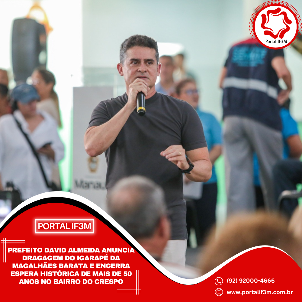 Visando atender a uma demanda histórica aguardada há mais de cinco décadas pelos moradores do bairro Crespo, o prefeito de Manaus, David Almeida, anunciou, nesta quarta-feira, 14/1, durante solenidade na zona Sul da capital, o início do processo para a dragagem do igarapé da rua Magalhães Barata. A intervenção, que já se encontra em fase de licitação, será viabilizada com recursos da Prefeitura de Manaus e emendas do senador Eduardo Braga.