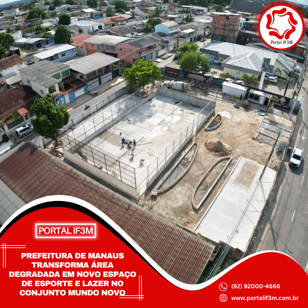 A Prefeitura de Manaus, por meio da Secretaria Municipal de Infraestrutura (Seminf), avança na revitalização da praça e da quadra poliesportiva do conjunto Mundo Novo, no bairro Cidade Nova, zona Norte da capital. Localizado na avenida Max Teixeira, o espaço está sendo totalmente transformado para incentivar a prática esportiva, promover o lazer e fortalecer a convivência comunitária.