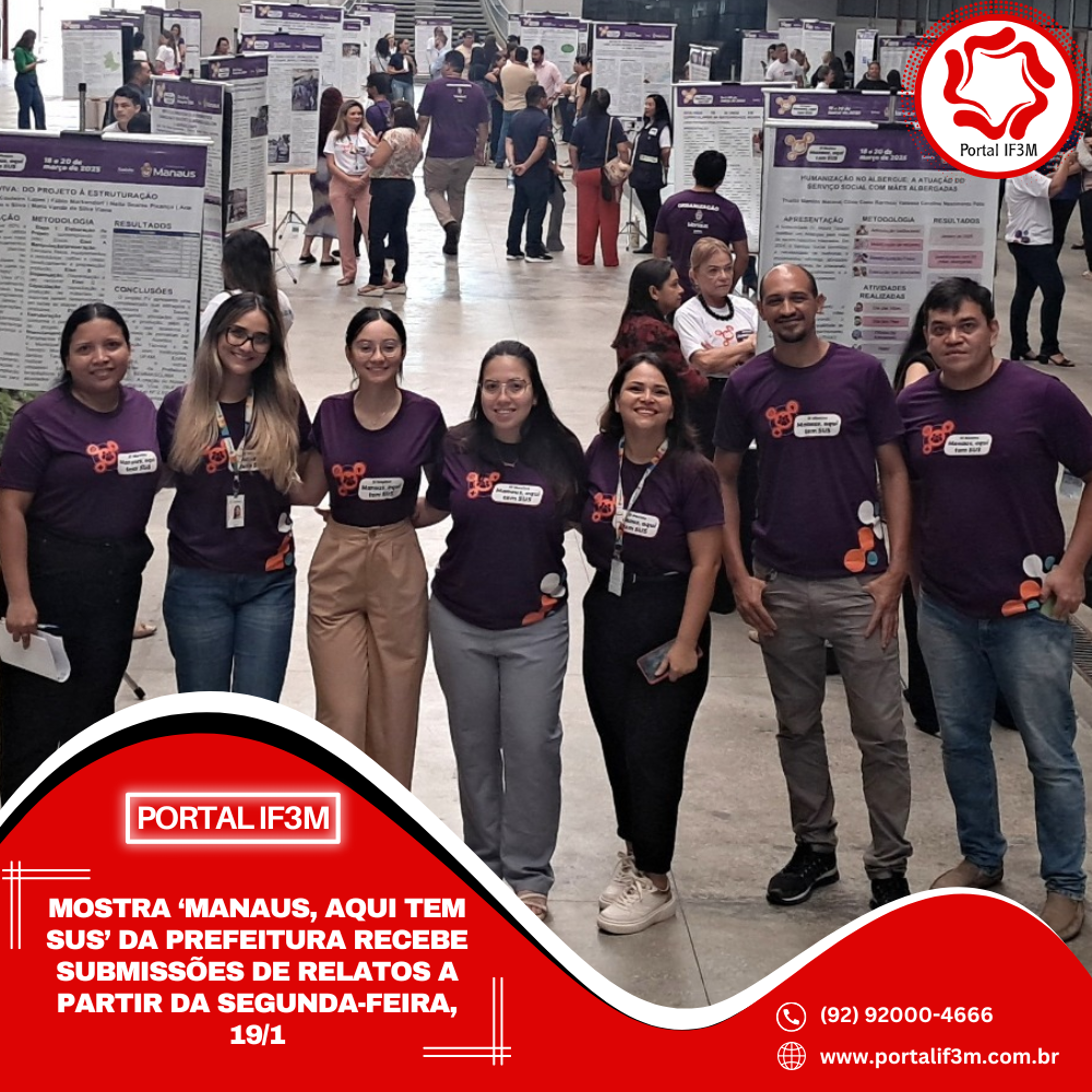 A Prefeitura de Manaus inicia os preparativos para a mostra “Manaus, aqui tem SUS – Edição 2026” com a abertura do prazo para submissão de trabalhos, de segunda-feira, 19/1, até o dia 7/2. Coordenada pela Secretaria Municipal de Saúde (Semsa), por meio da Escola de Saúde Pública (Esap Manaus), a exposição acontecerá de 25 a 27/3, com a apresentação de experiências bem-sucedidas desenvolvidas no município, no âmbito do Sistema Único de Saúde (SUS).