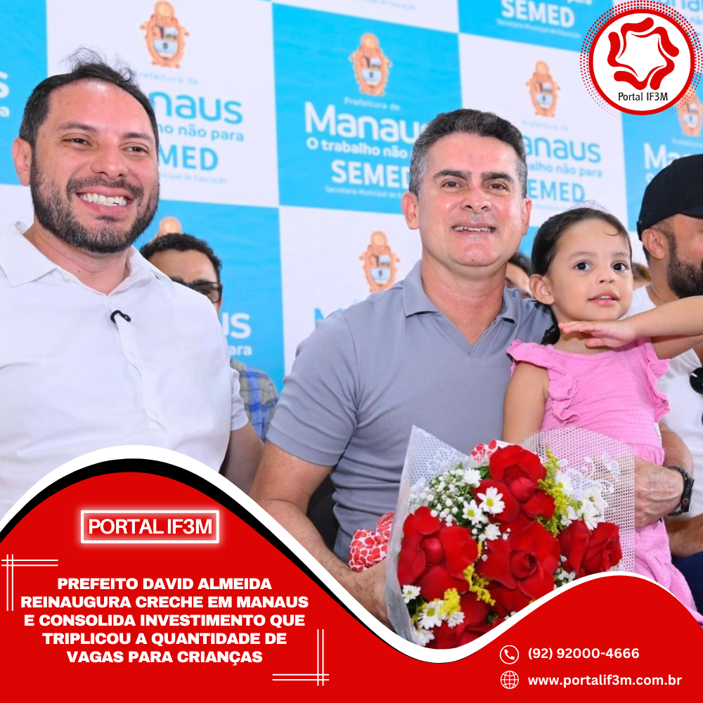 O prefeito de Manaus, David Almeida, reinaugurou, nesta sexta-feira, 16/1, a creche municipal Tude Moutinho da Costa, no bairro Cidade de Deus, zona Norte da capital. A entrega integra o conjunto de investimentos da gestão municipal na educação infantil e reforça Manaus como a capital que mais amplia vagas e estrutura para crianças de 1 a 3 anos no Norte do país.