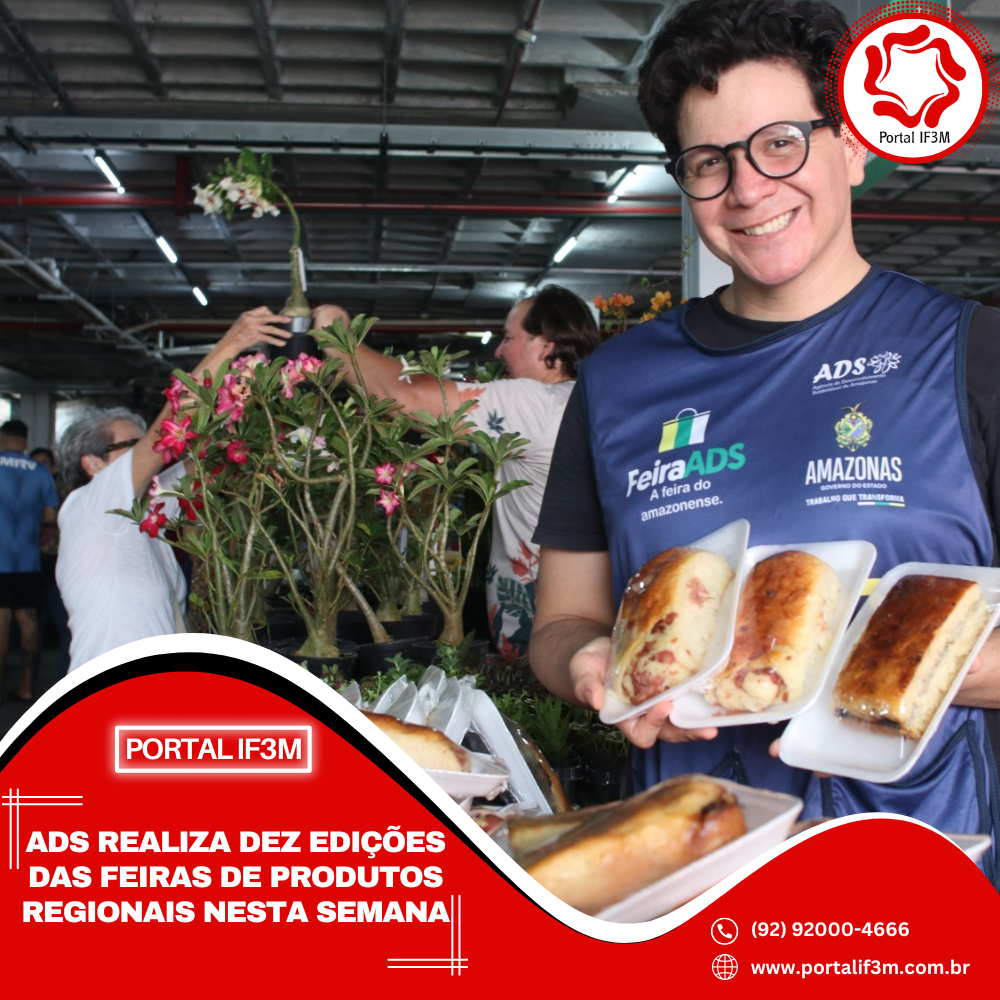 A Agência de Desenvolvimento Sustentável do Amazonas (ADS) realiza, nesta semana, as Feiras de Produtos Regionais, que inclui dez edições habituais. Com início nesta terça-feira (20/01) e finalizando no domingo (25/01), as edições serão realizadas em diferentes pontos da capital e da zona rural de Manaus.