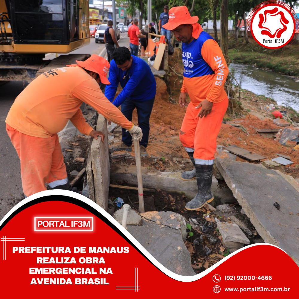 Prefeitura de Manaus, por meio da Secretaria Municipal de Infraestrutura (Seminf), atuou, nesta terça-feira, 20/1, de forma emergencial na avenida Brasil, localizada no bairro Compensa, zona Oeste, após o desabamento de parte da mureta e calçada do igarapé da área, devido à grande quantidade de lixo descartado de forma irregular.