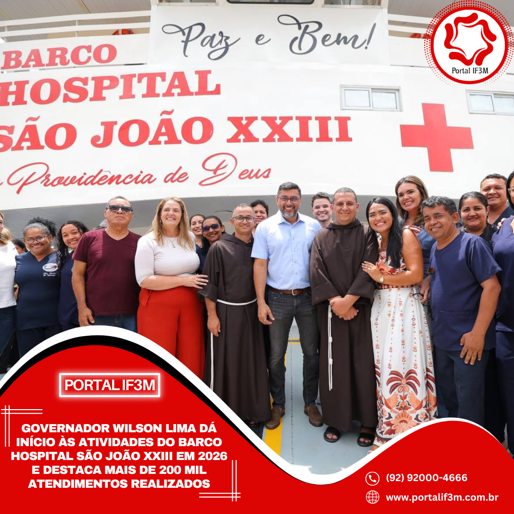 O governador do Amazonas, Wilson Lima, deu início nesta quinta-feira (22/01) às atividades do Barco Hospital São João XXIII em 2026, com a primeira expedição do ano em Manacapuru (a 68 quilômetros de Manaus). Desde que iniciou as operações, no final de 2024, a unidade fluvial já realizou cerca de 200 mil atendimentos, ampliando o acesso da população ribeirinha e de comunidades do interior a serviços de saúde de média complexidade.