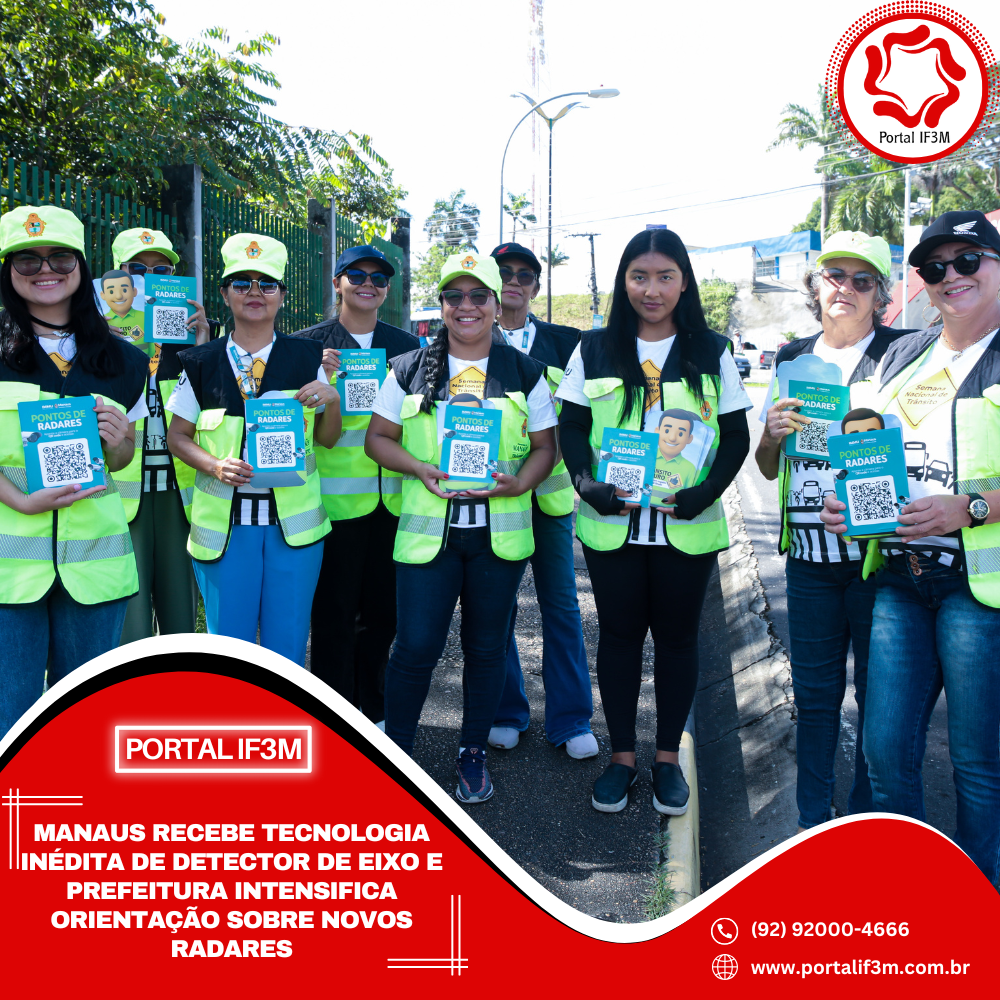 Prefeitura de Manaus, por meio do Instituto Municipal de Mobilidade Urbana (IMMU), realizou, nesta quinta-feira, 22/1, uma ação educativa de trânsito na avenida General Rodrigo Otávio Jordão Ramos, em frente à Universidade Federal do Amazonas (Ufam). A atividade teve como foco orientar motoristas sobre os novos radares de fiscalização eletrônica que começam a operar a partir do dia 1º de fevereiro, com destaque para a tecnologia inédita de detecção de eixo, voltada à fiscalização de veículos pesados.