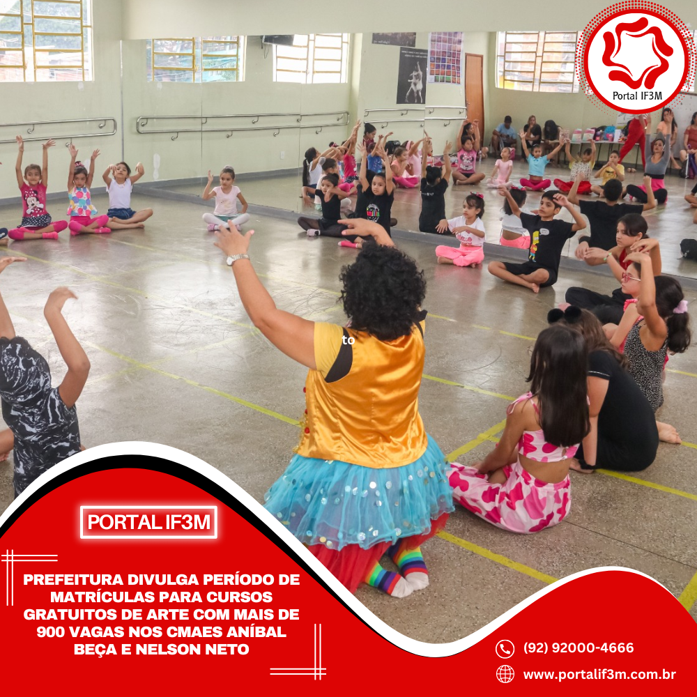 A Prefeitura de Manaus, por meio da Secretaria Municipal de Educação (Semed), inicia, na próxima segunda-feira, 26/1, o período de matrículas do Centros Municipais de Arte Educação (Cmaes) Aníbal Beça e Nelson Neto. As inscrições, que serão realizadas presencialmente nas próprias unidades dos Cmaes, seguem até o dia 13/2, das 8h às 11h e das 13h30 às 16h. Os Cmaes Aníbal Beça e Nelson Neto estão localizados, respectivamente, na rua Barreirinha, n° 175, bairro São José 3, e na rua Rio Paudari, s/n°, bairro São José 4, ambos situados na zona Leste da capital.