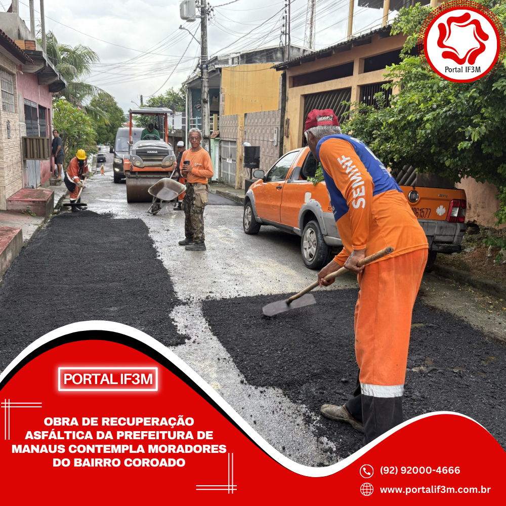 Nesta segunda-feira, 26/1, a Prefeitura de Manaus, por meio da Secretaria Municipal de Infraestrutura (Seminf), contemplou os moradores da rua Nossa Senhora do Perpétuo Socorro, na comunidade Ouro Verde, bairro Coroado, localizado na zona Leste da capital, com serviços de recuperação asfáltica. As equipes dos distritos de obras trabalharam na via com a intervenção que transformou a realidade dos moradores.