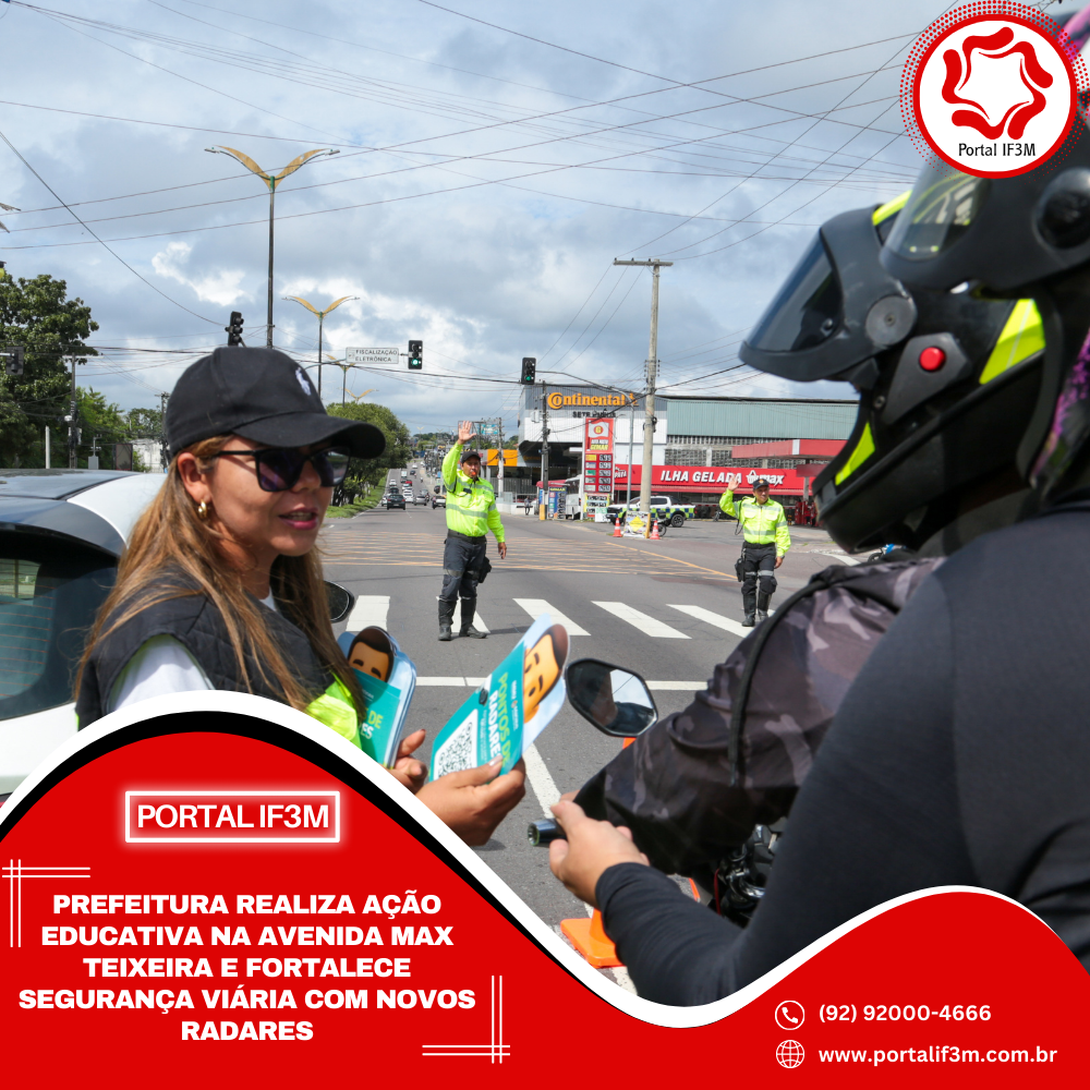 Prefeitura de Manaus, por meio do Instituto Municipal de Mobilidade Urbana (IMMU), realizou, nesta quarta-feira, 28/1, uma ação educativa e de orientação aos condutores na avenida Max Teixeira, zona Norte da capital, com foco nos novos equipamentos de fiscalização eletrônica que entram em funcionamento a partir do dia 1º de fevereiro.