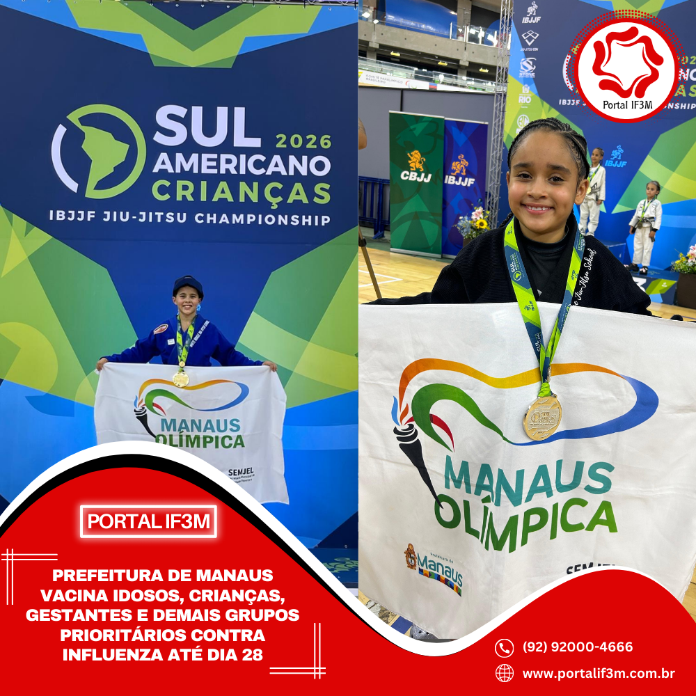 Prefeitura de Manaus, por meio da Secretaria Municipal de Juventude, Esporte e Lazer (Semjel), avança no fortalecimento do esporte de base e celebra os resultados expressivos de atletas manauaras em competições recentes, com apoio institucional e incentivo por meio das políticas públicas voltadas ao esporte. No sábado, 7/2, os atletas garantiram cinco medalhas de ouro e uma de prata no Campeonato Sul-Americano de Jiu-Jitsu Crianças 2026, realizado no Rio de Janeiro (RJ).
