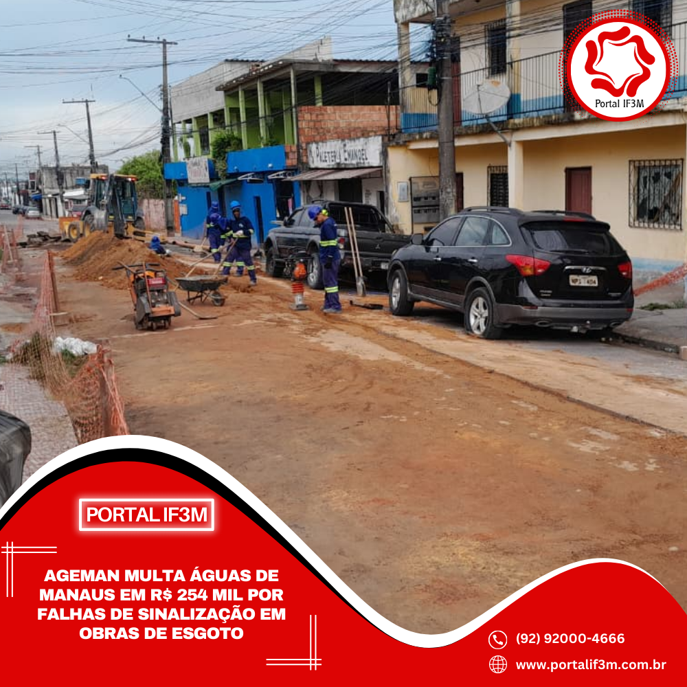 A Agência Reguladora dos Serviços Públicos Delegados do Município de Manaus (Ageman) aplicou multa de R$ 254,7 mil à concessionária Águas de Manaus por ausência e inadequação de sinalização nas obras de expansão da rede de esgotamento sanitário realizadas em vias públicas da capital.