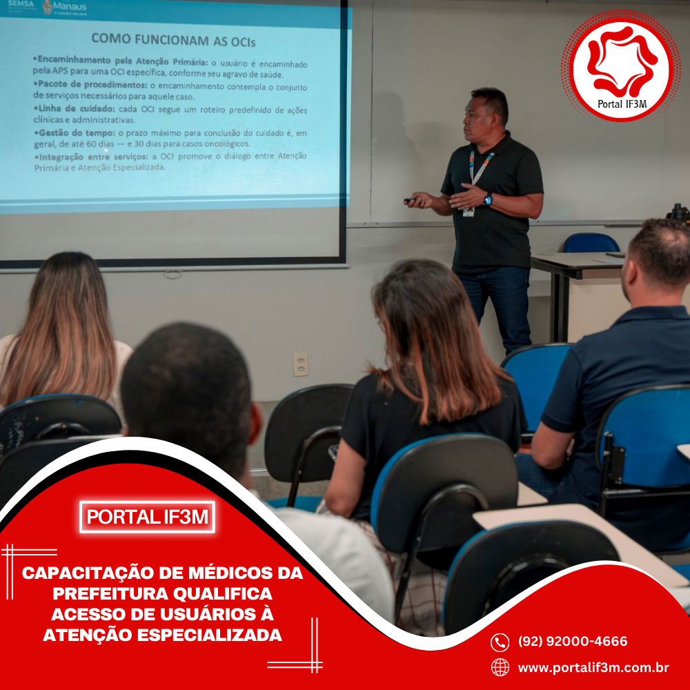 A Prefeitura de Manaus promoveu uma capacitação para médicos da Secretaria Municipal de Saúde (Semsa), na tarde de quarta-feira, 11/2, em continuidade das ações para implementação das Ofertas de Cuidados Integrados (OCIs) na rede básica da capital. A nova turma da formação, iniciada no mês passado, ocorreu na faculdade Martha Falcão Wyden, na zona Centro-Sul, reunindo profissionais dos cinco distritos de saúde da Semsa, Norte, Leste, Oeste, Sul e rural.
