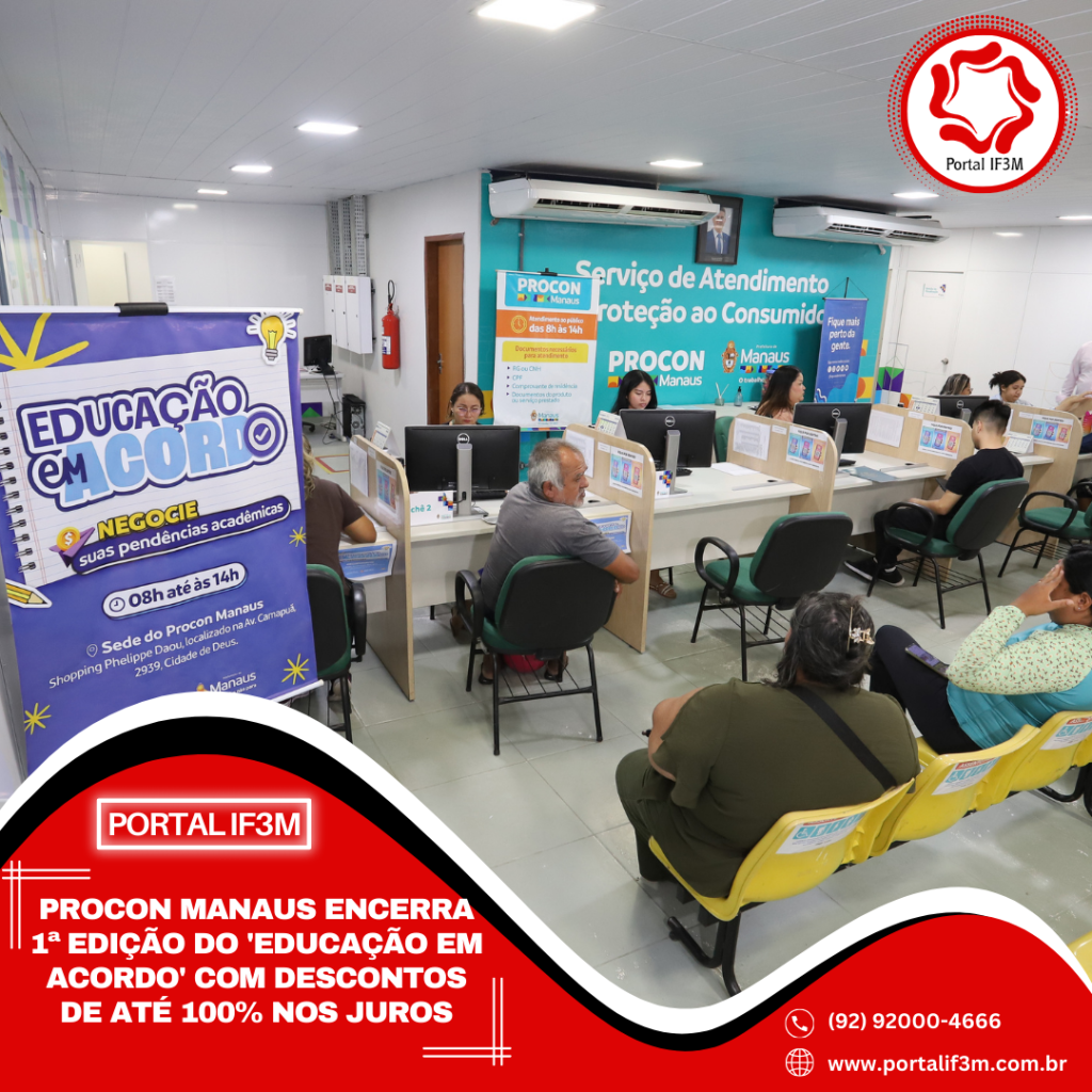 A Prefeitura de Manaus, por meio do Serviço de Atendimento e Proteção ao Consumidor (Procon Manaus), concluiu, nesta sexta-feira, 27/2, a 1ª edição do projeto “Educação em Acordo”. A iniciativa foi realizada na sede do órgão, no shopping Phelippe Daou, na zona Norte da capital, e possibilitou a estudantes da rede privada negociar pendências financeiras diretamente com as instituições de ensino superior.