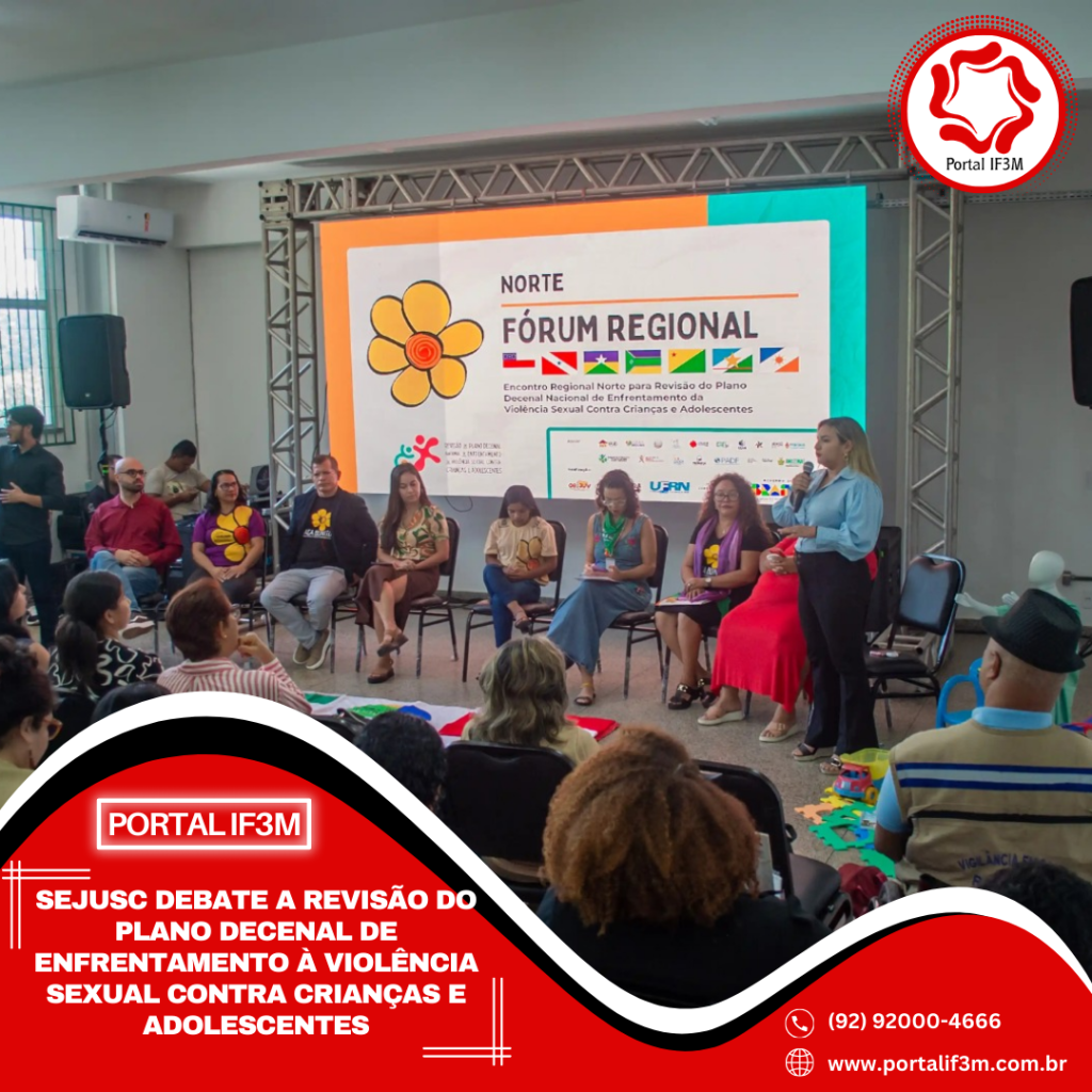 A Secretaria de Estado de Justiça, Direitos Humanos e Cidadania (Sejusc), em parceria com o Comitê Estadual de Enfrentamento à Violência Sexual contra Crianças e Adolescentes (CEVSCA), participam do Encontro Regional para revisão do Plano Decenal de Enfrentamento à Violência Sexual contra Crianças e Adolescentes. A atividade, realizada nesta quarta-feira (04/03) na Faculdade de Psicologia da Universidade Federal do Amazonas (Ufam), zona sul da capital, segue até quinta-feira (05/03).