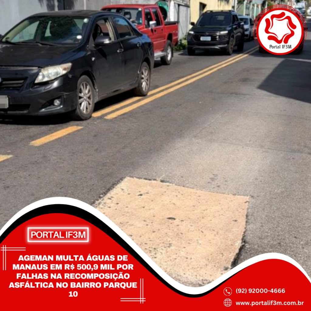 A Agência Reguladora dos Serviços Públicos Delegados do Município de Manaus (Ageman) aplicou duas multas à concessionária Águas de Manaus, após constatar falhas na recomposição asfáltica em vias públicas onde foram realizados serviços de manutenção na rede de abastecimento de água. As duas penalidades somam R$ 500,9 mil.