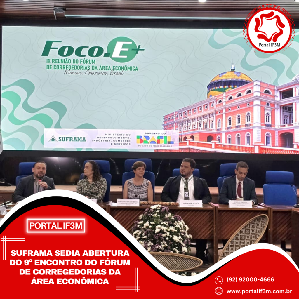 O auditório da Superintendência da Zona Franca de Manaus (Suframa) foi palco, na manhã desta quarta-feira (11), da solenidade de abertura oficial da 9ª Reunião do Fórum de Corregedorias da Área Econômica (FOCO.E+). O evento, de abrangência nacional, reúne gestores, corregedores e técnicos de diversos Ministérios e entidades vinculadas para promover a integração, o intercâmbio de experiências e o fortalecimento das ações correcionais e de integridade na administração pública.