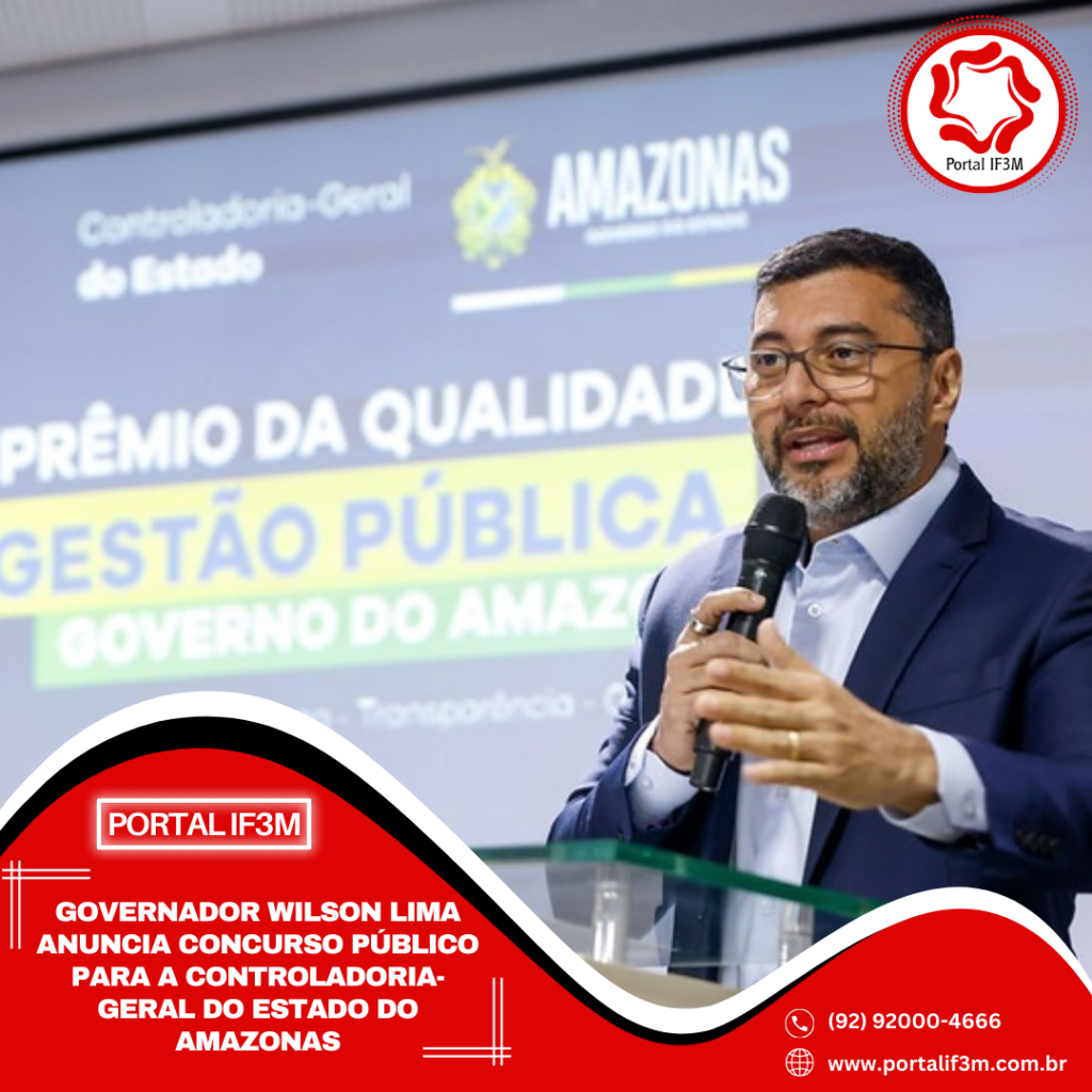 O governador Wilson Lima anunciou, nesta quinta-feira (12/03), a realização de um concurso público para a Controladoria-Geral do Estado do Amazonas (CGE-AM). A medida foi formalizada por meio da Portaria Conjunta nº 001/2026, publicada pela Casa Civil e pela CGE-AM. O anúncio foi feito durante a entrega do Prêmio da Qualidade do Sistema de Gestão, realizada na sede do governo.