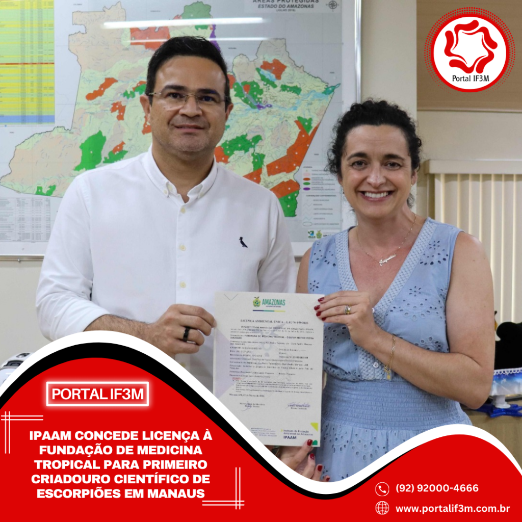 O Instituto de Proteção Ambiental do Amazonas (Ipaam) concedeu, nesta quarta-feira (11/03), Licença Ambiental Única (LAU nº 059/2026) para o funcionamento do primeiro criadouro científico de escorpiões autorizado pelo estado. O licenciamento foi emitido para a Fundação de Medicina Tropical Doutor Heitor Vieira Dourado (FMT-HVD), localizada na zona centro-oeste de Manaus.
