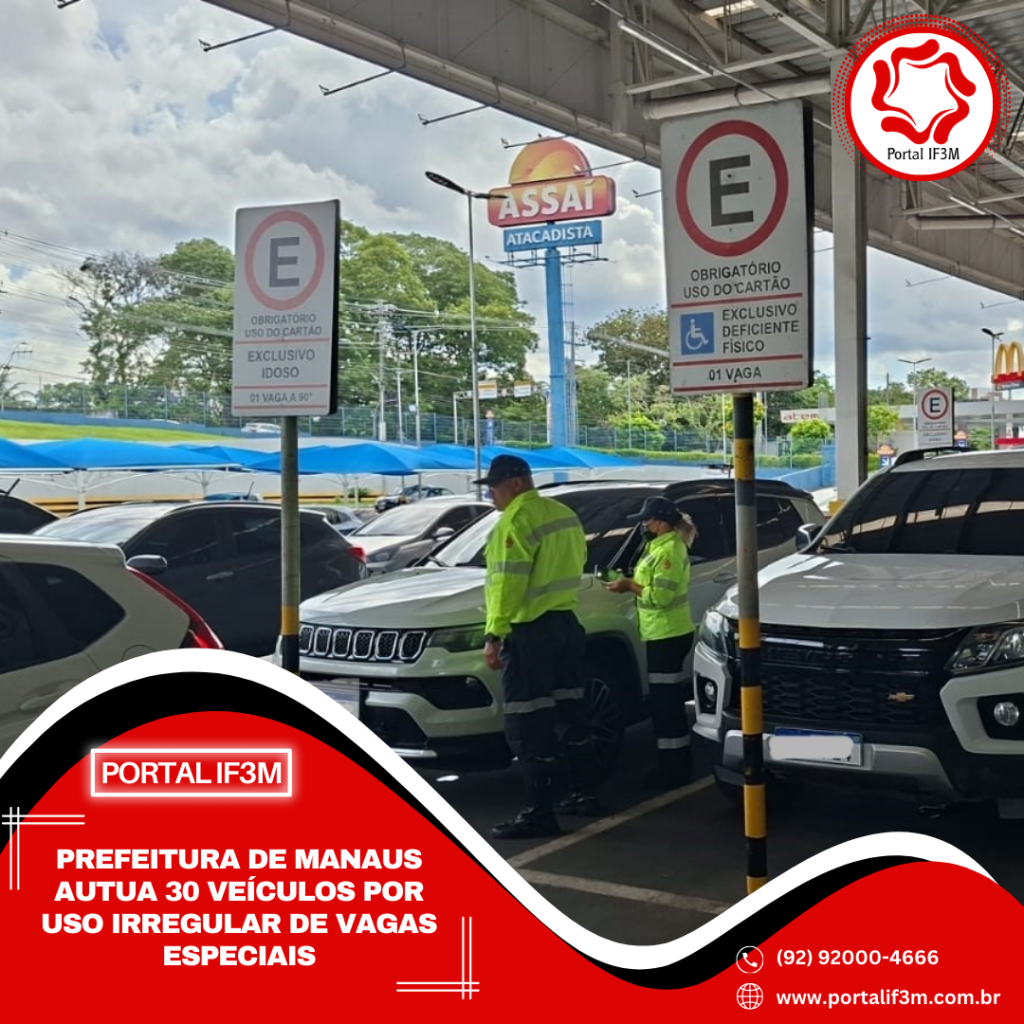 Com o objetivo de facilitar mobilidade e direitos fundamentais de idosos e Pessoas com Deficiência (PcDs), a Prefeitura de Manaus, por meio Instituto Municipal de Mobilidade Urbana (IMMU), realizou, nesse fim de semana, uma operação de fiscalização em estacionamentos do Manauara Shopping, Amazonas Shopping e supermercados da zona Centro-Sul. A ação cumpriu regras de uso para vagas especiais. Na ação, os agentes de trânsito registraram 30 autuações por uso irregular desses espaços.