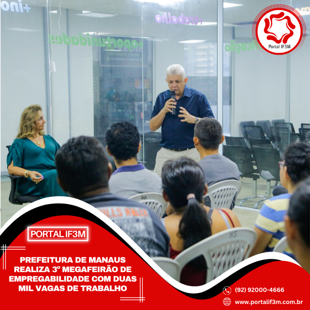 Prefeitura de Manaus, por meio da Secretaria Municipal do Trabalho, Empreendedorismo e Inovação (Semtepi), realiza a 3ª edição do Megafeirão de Empregabilidade com mais de duas mil vagas, nesta sexta-feira, 27/3, das 8h às 14h, na Central do Empreendedor, no shopping Phelippe Daou, no bairro Cidade de Deus, zona Norte. O evento tem como objetivo ampliar o acesso da população ao mercado de trabalho, conectando candidatos a empresas contratantes e fortalecendo a geração de emprego e renda, por meio do Sine Manaus.