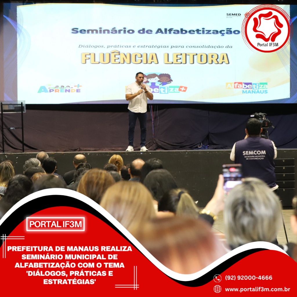 A Prefeitura de Manaus, por meio da Secretaria Municipal de Educação de Manaus (Semed), realiza, nesta quarta-feira, 25/3, o Seminário Municipal de Alfabetização, com o tema “Diálogos, Práticas e Estratégias para Consolidação da Fluência Leitora”. O evento é voltado a professores do 1º e 2º anos do ensino fundamental, além de gestores e equipes pedagógicas das Divisões Distritais Zonais (DDZs), da rede municipal de Educação.