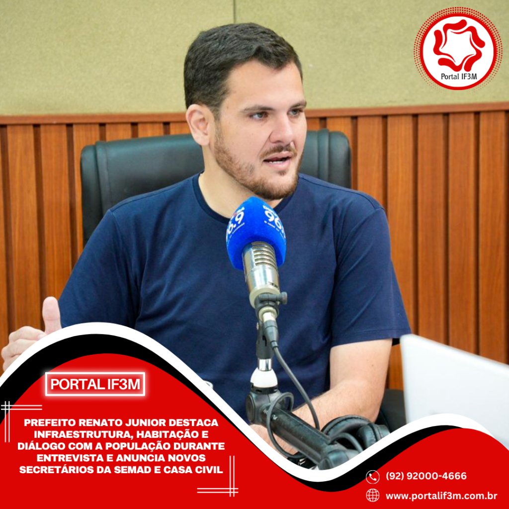 O prefeito de Manaus, Renato Junior, em entrevista à rádio BandNews Difusora 93,7 FM, na manhã desta terça-feira, 1º/4, apresentou as diretrizes da nova fase da gestão municipal, destacando prioridades como infraestrutura, habitação, enfrentamento aos impactos das chuvas e fortalecimento do diálogo institucional. O prefeito também anunciou os primeiros nomes da nova composição administrativa, com a nomeação de Célio Guedes para a Casa Civil e de Heliatan Botelho como secretário municipal de Administração e Gestão.