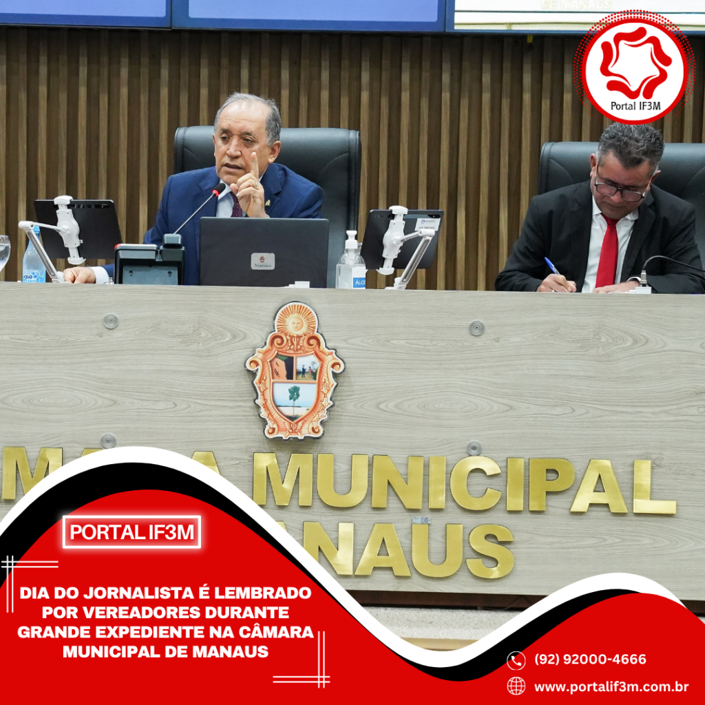 O Dia do Jornalista, comemorado nesta terça-feira (7 de abril), foi lembrado pelos vereadores durante o Grande Expediente da Sessão Plenária na Câmara Municipal de Manaus (CMM). Os parlamentares aproveitaram os pronunciamentos para destacar a importância dos profissionais da comunicação na construção da democracia e no acesso da população à informação.