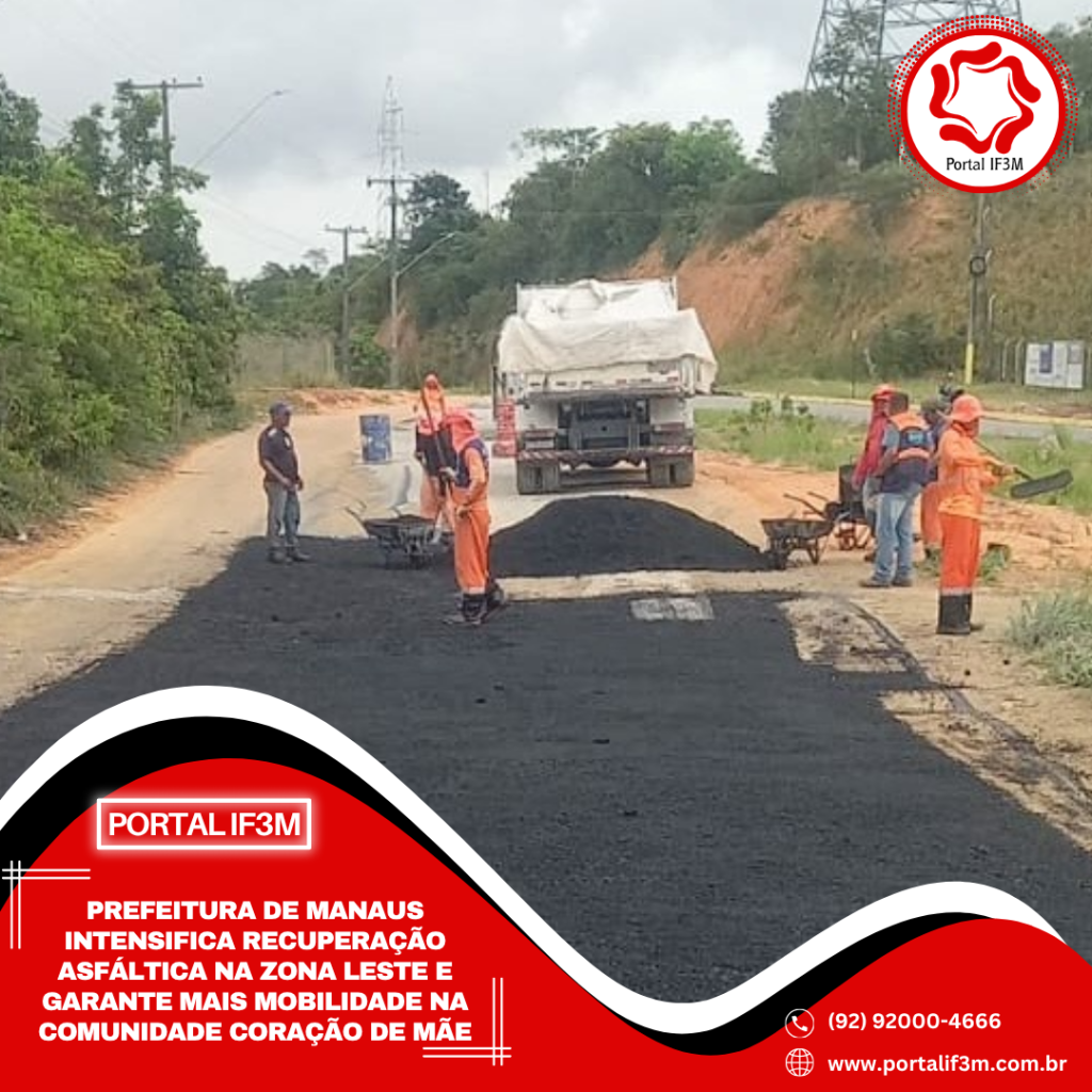 A Prefeitura de Manaus, por meio da Secretaria Municipal de Infraestrutura (Seminf), avançou, nesta quarta-feira, 15/4, com mais uma frente de recuperação viária na zona Leste da capital. As equipes atuaram na rua Bougainville, na comunidade Coração de Mãe, bairro Distrito Industrial 2, com serviços de manutenção asfáltica para restabelecer condições adequadas de tráfego na via.