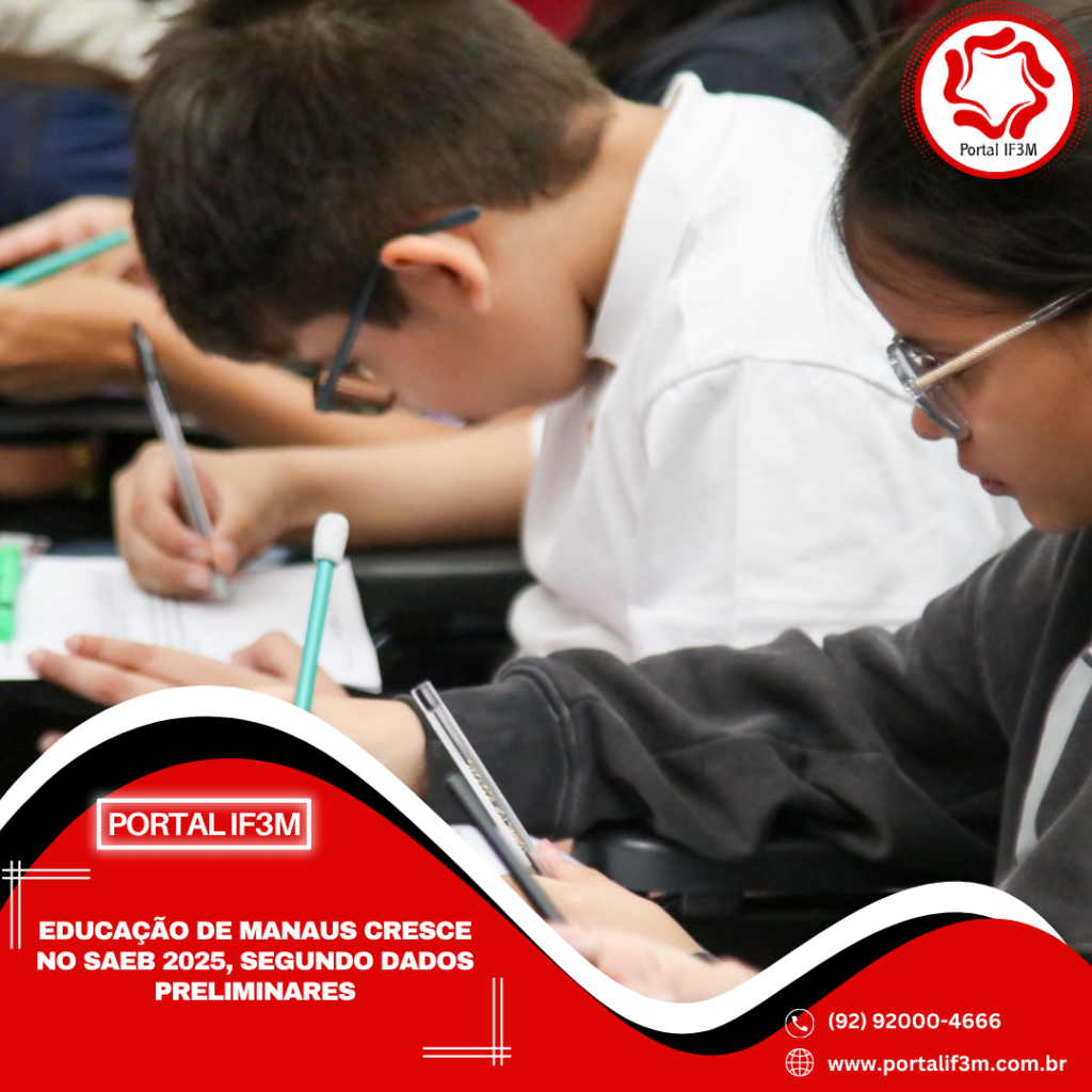 A Prefeitura de Manaus, por meio da Secretaria Municipal de Educação (Semed), comemorou o resultado preliminar do Sistema de Avaliação da Educação Básica (Saeb) 2025, divulgado, na terça-feira, 14/4, pelo Instituto Nacional de Estudos e Pesquisas Educacionais Anísio Teixeira (Inep). A rede municipal apresentou crescimento superior a 3,2% nos anos iniciais do ensino fundamental (1º ao 5º ano) e de mais de 1,9% nos anos finais (6º ao 9º ano). Os dados subsidiam o cálculo do Índice de Desenvolvimento da Educação Básica (Ideb).
