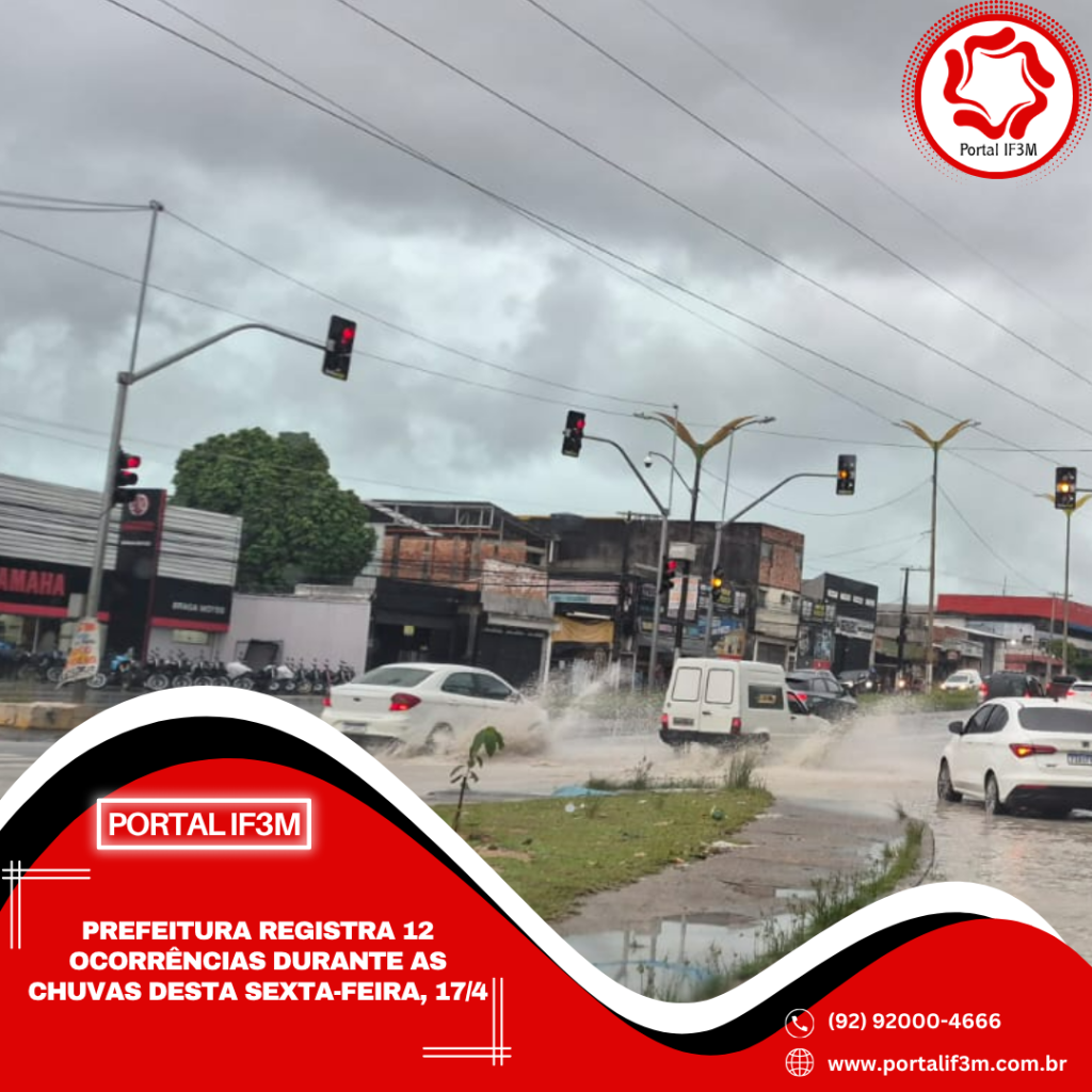 Prefeitura de Manaus, por meio do Centro de Cooperação da Cidade (CCC), registrou 12 ocorrências durante as chuvas intensas que atingem a cidade nesta sexta-feira, 17/4. As demandas foram recebidas pelo Disque 199, canal direto de comunicação com a Defesa Civil, operado 24 horas na sede do CCC.