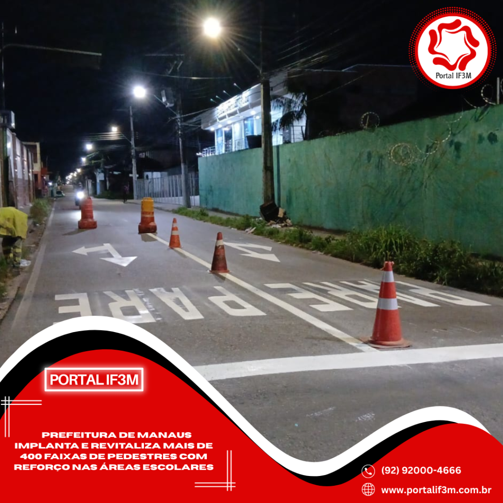 A Prefeitura de Manaus, por meio do Instituto Municipal de Mobilidade Urbana (IMMU), avança no fortalecimento da sinalização de trânsito em toda a cidade, especialmente nas proximidades das escolas, com o objetivo de aumentar a segurança de pedestres, motoristas e, sobretudo, dos alunos.